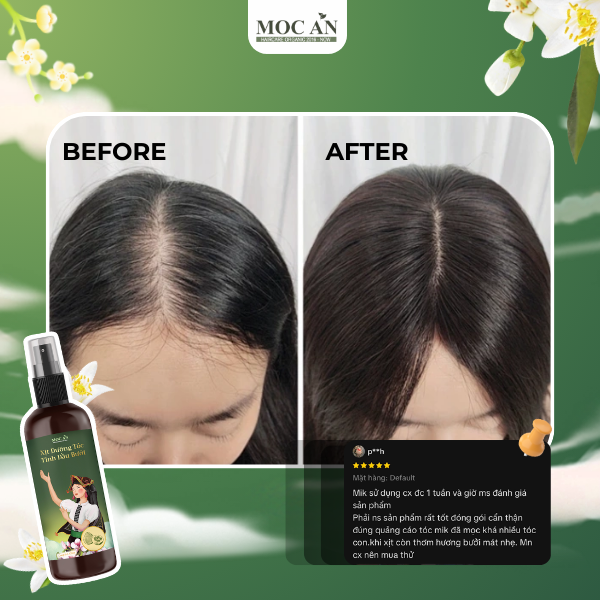 Sở hữu một mái tóc dày mượt, bồng bềnh là niềm mơ ước của bất kỳ ai. Tuy nhiên, dưới tác động của môi trường, hóa chất làm tóc và áp lực cuộc sống, tình trạng rụng tóc, tóc thưa mỏng ngày càng trở nên phổ biến. Xịt tinh dầu bưởi da xanh Mộc Ân Haircare ra đời như một giải pháp "cứu cánh" từ thiên nhiên, giúp phục hồi và nuôi dưỡng mái tóc từ sâu bên trong